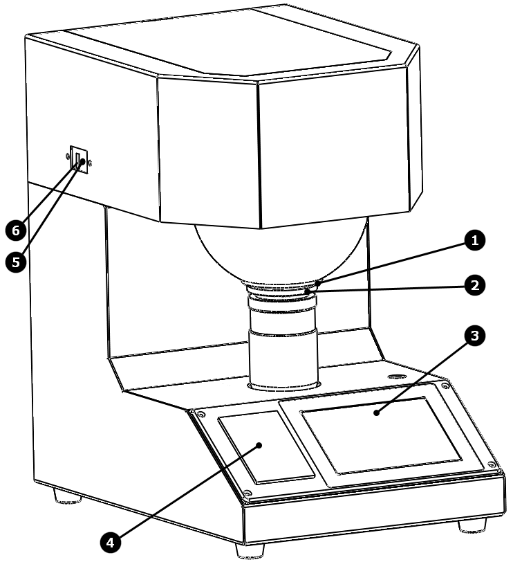 全自动色度仪为机电一体化结构,整体美观牢固。背面下方有插座(内有保险丝2A)和电源开关,插座接地端(接仪器外壳)应可靠接地。上部是仪器主体部分,内装测量光电部件,漫射球下面是测量孔,下方装有试样托和压紧器,把试样放到试样托上,压紧在测量孔下面。拉板上装有紫外截止滤光片;拧左侧面拉板旁边的调节螺钉,可